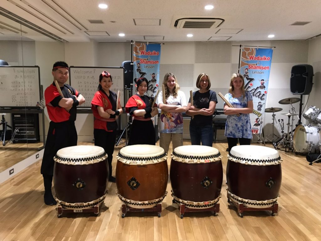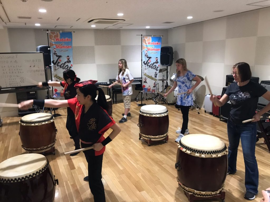 浅草エリアでアメリカから美女親子3名で和太鼓体験