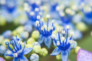 沿道の紫陽花がつつましく咲いているのに心が和み