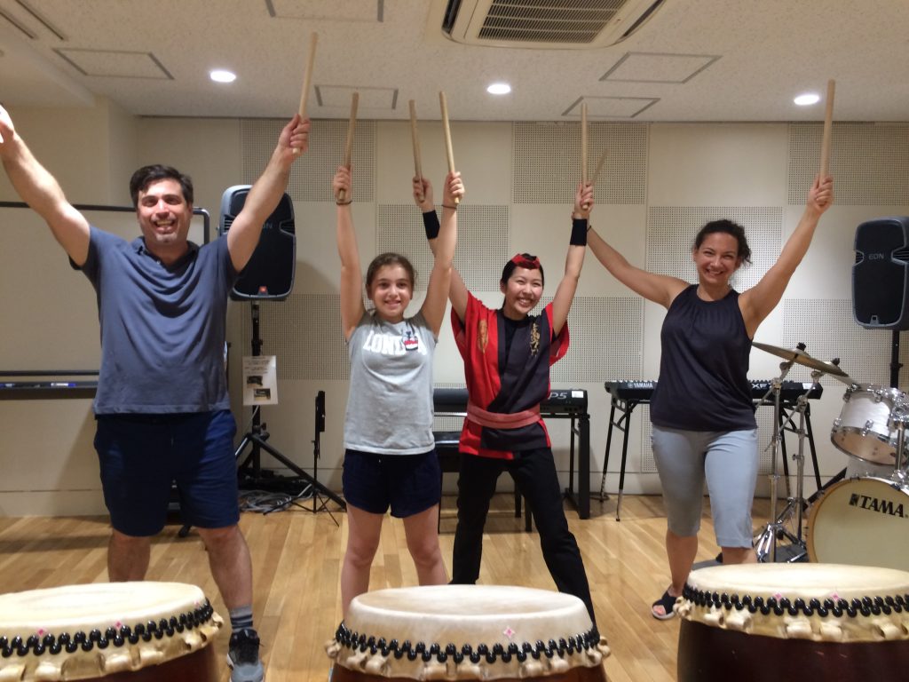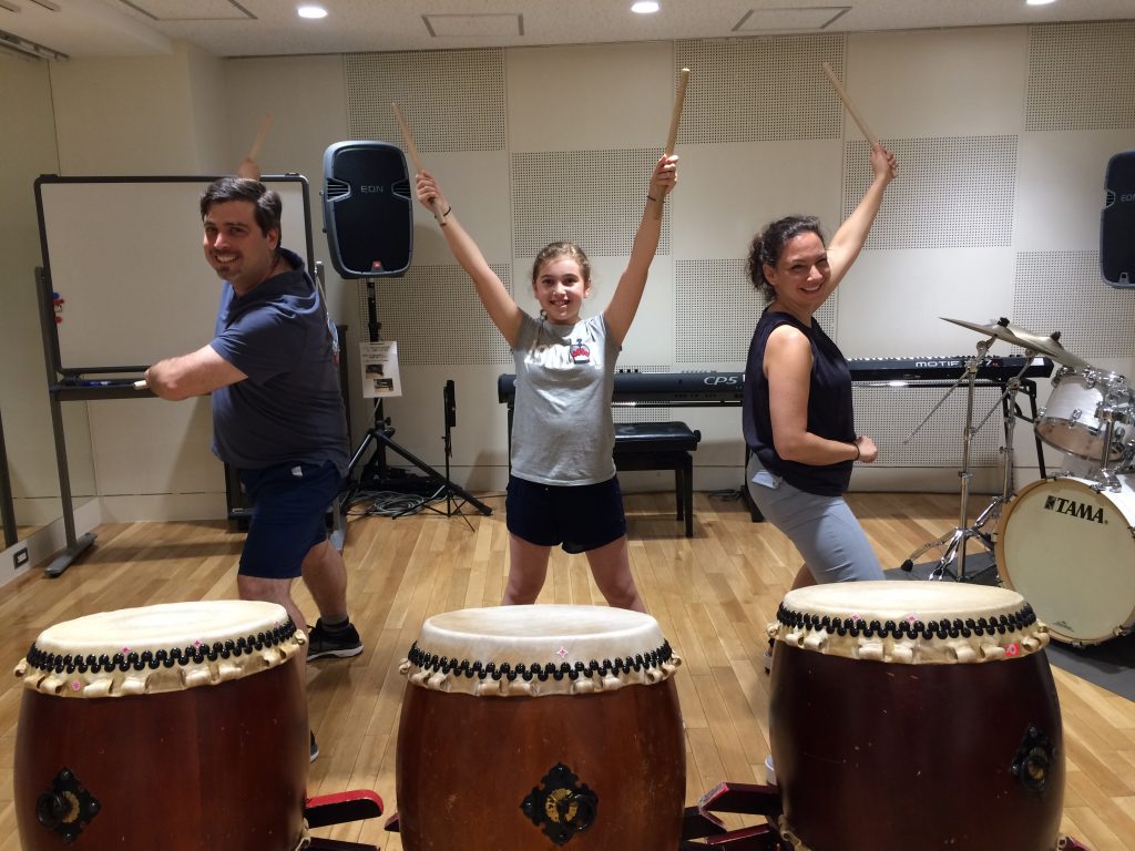 こちらでは同時開講でカナダからの3人家族で和太鼓を打ちました✨