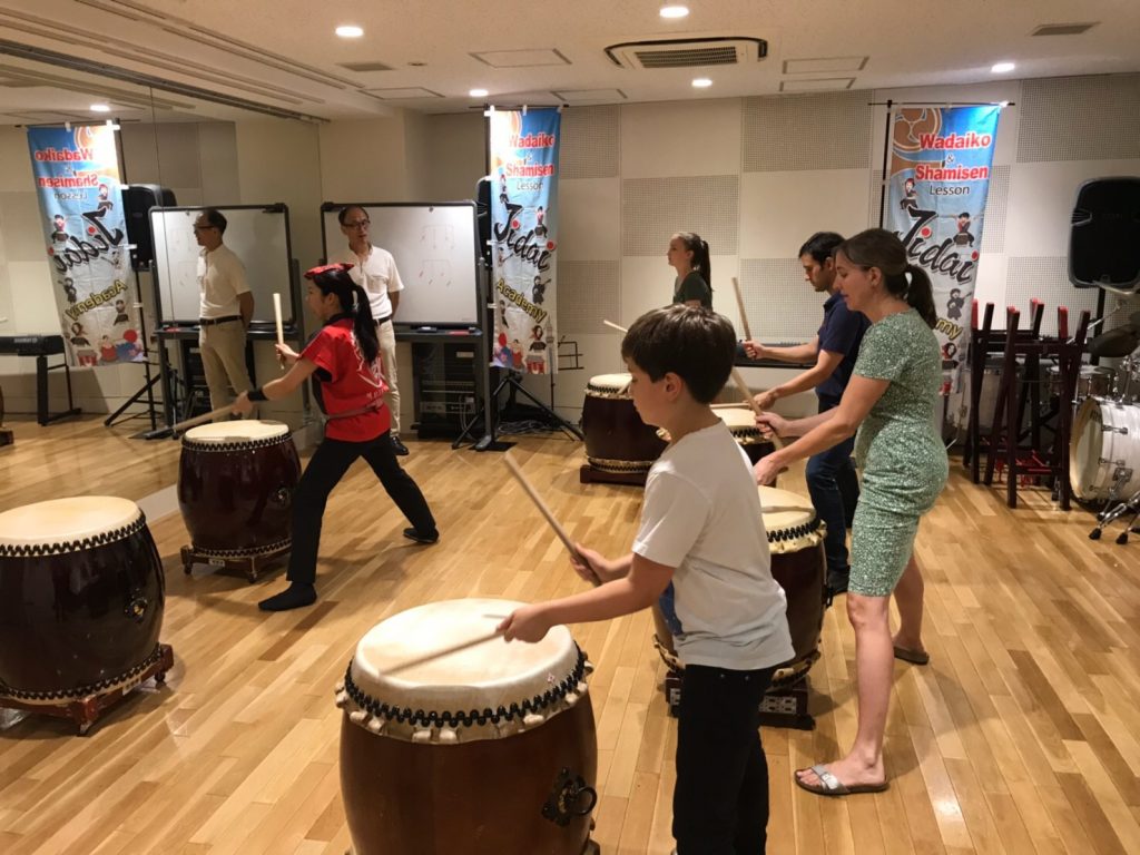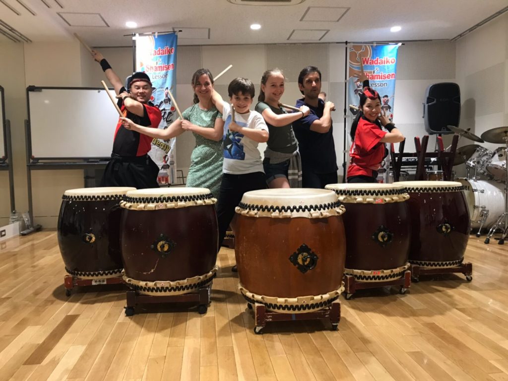 そんな中、2週間の日本旅行でいらしているご家族が本日は和太鼓体験にいらしてくれました!イギリス人4人ご家族です✨