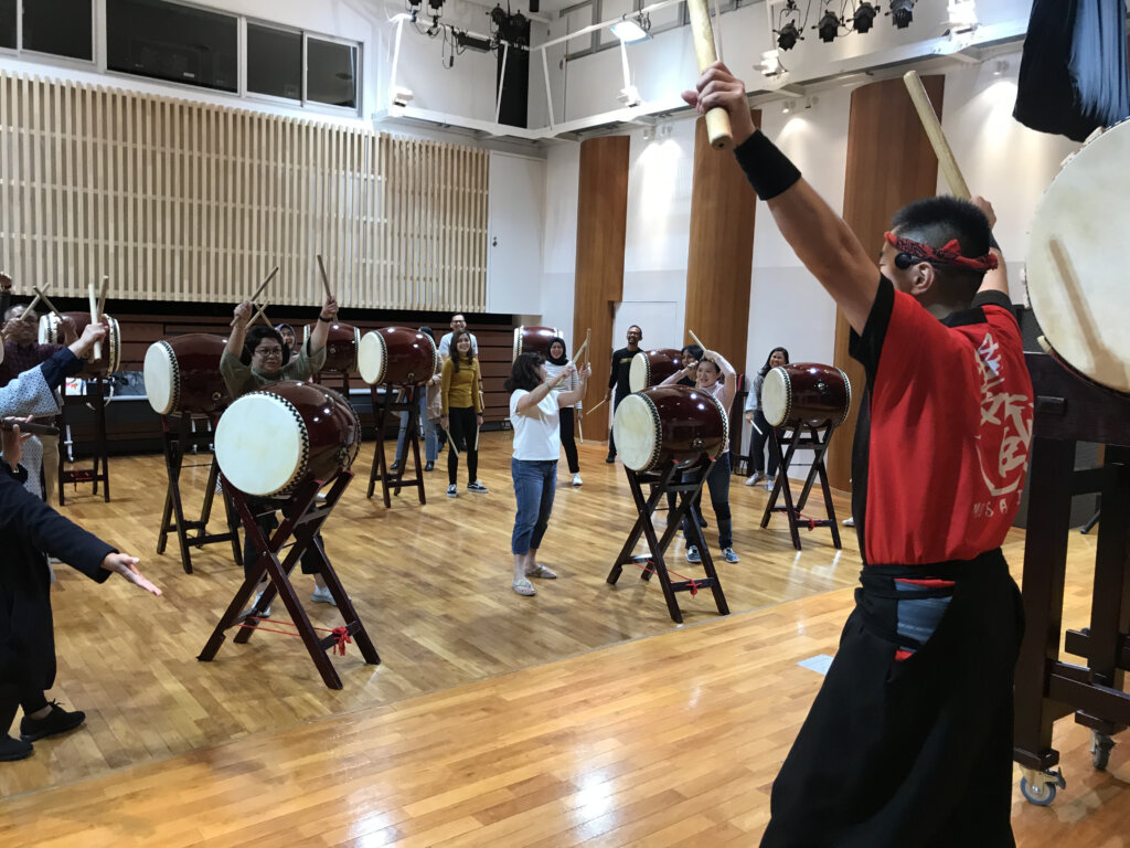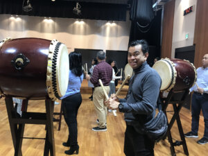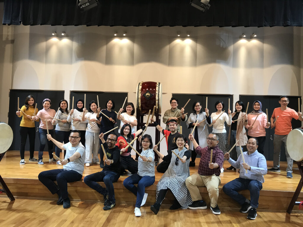 朝からインドネシア企業21名様のteamBuilding和太鼓体験です!