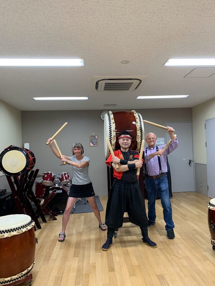 アメリカから70代男性が50代の娘さんを連れて和太鼓体験にいらしてくださいました。 お二人は親子でお父さんは3度目の来日 80歳近くになっても足取りも軽やか 娘さんは初来日で以前アメリカで和太鼓公演をご覧になって ハワイでは盆踊りに参加 笑顔がとて...