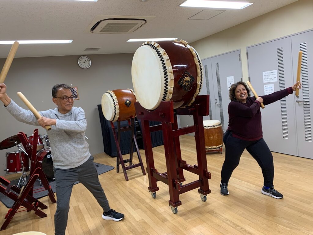 カリフォルニアからサクラに会いに夫婦2名和太鼓体験