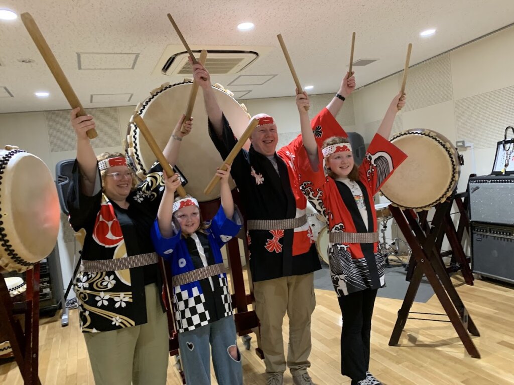 和太鼓チーム結成!?イギリスから音楽一家4名で和太鼓体験