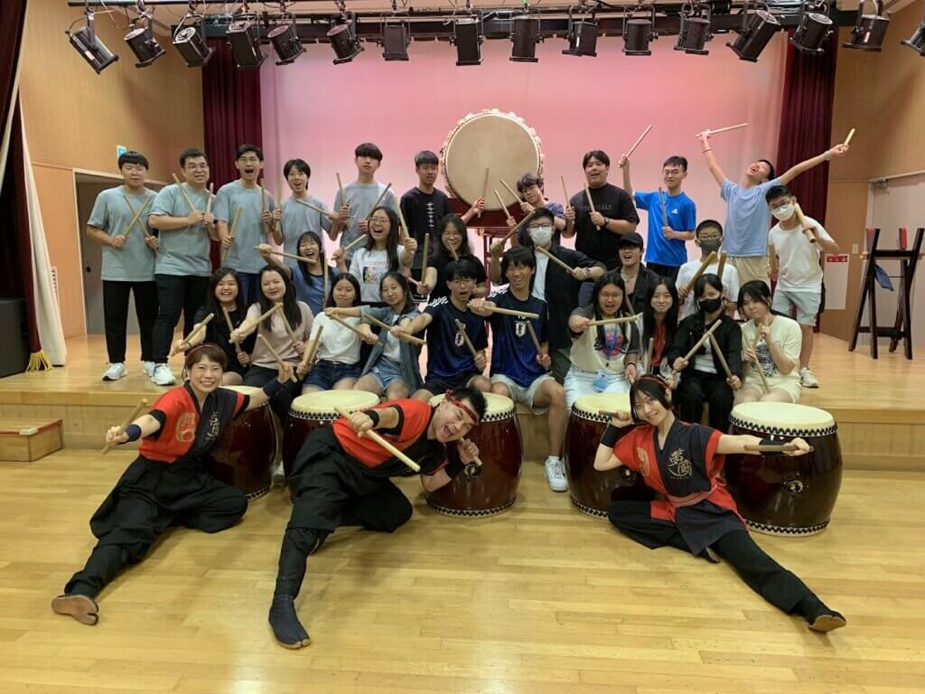 香港から14歳から17歳の学生22名が教育プログラム和太鼓体験60分コース