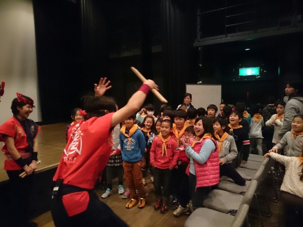 スイミングスクールの小学生39名と先生6名で和太鼓体験レポ