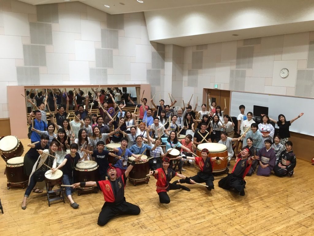 日本語留学生&日本人大学生60名が和太鼓で国際交流!