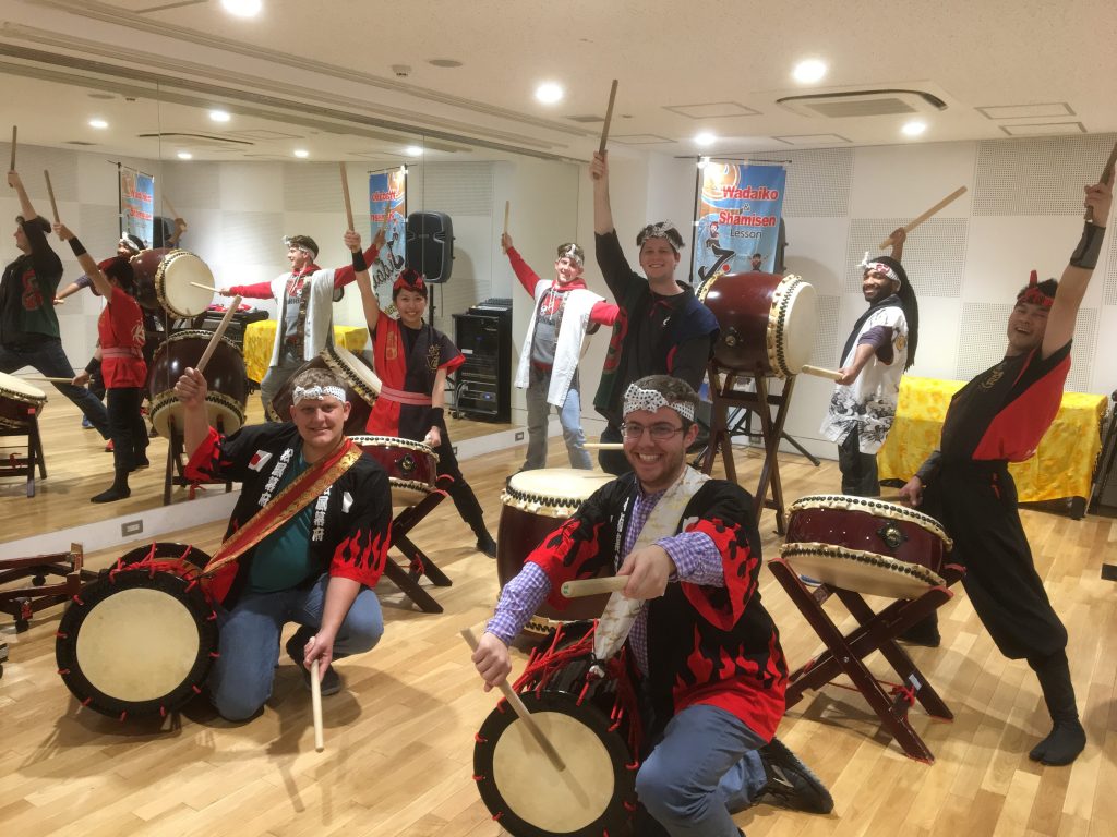 日本語留学生8人カメラマン同行で貸切和太鼓体験