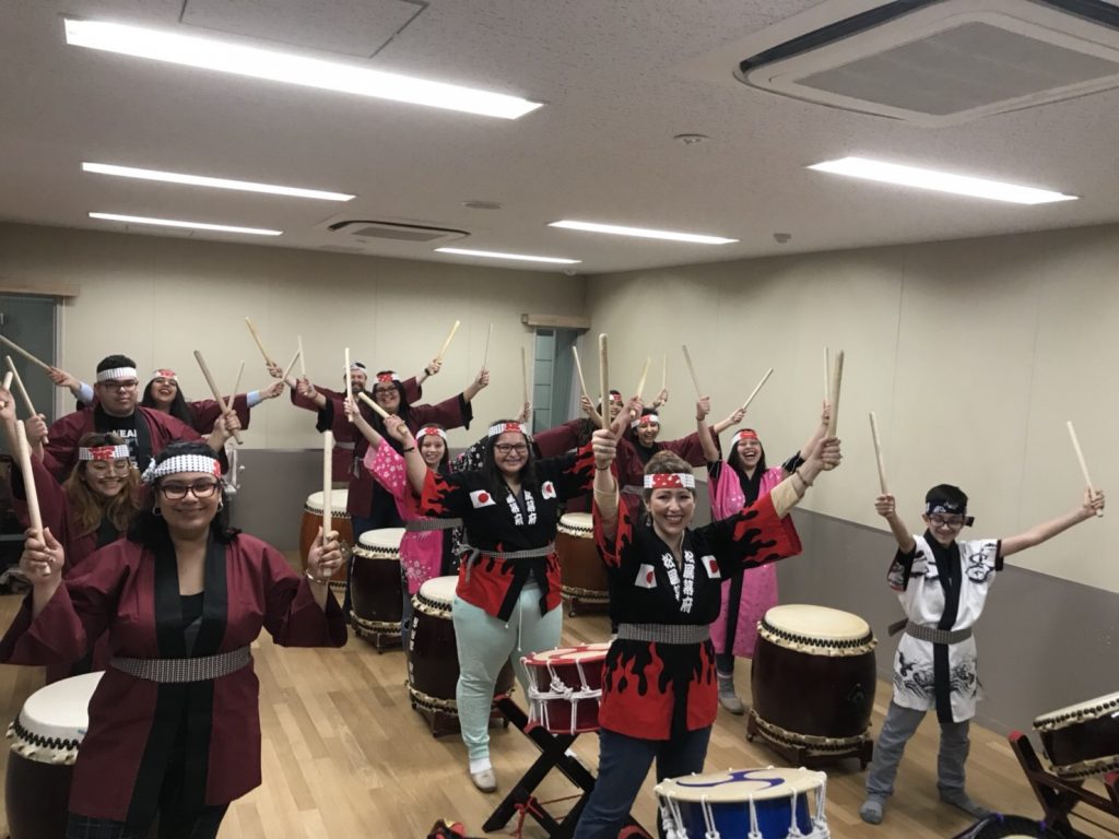 オクラホマ州から小学生中学生と先生13名和太鼓体験