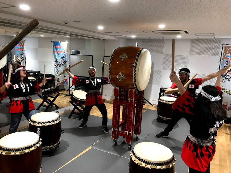 日本語学校からスペイン、イギリスから4名で和太鼓体験✨