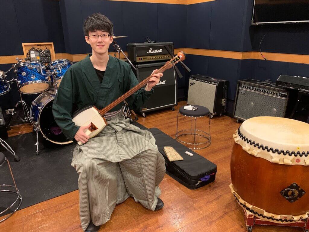 20代男性が秋葉原で浴衣に袴90分コース三味線体験