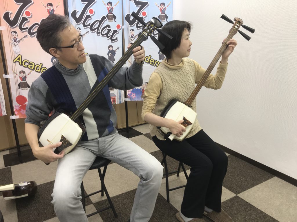 東京三味線体験 福岡出身のご夫婦ペアで三味線体験