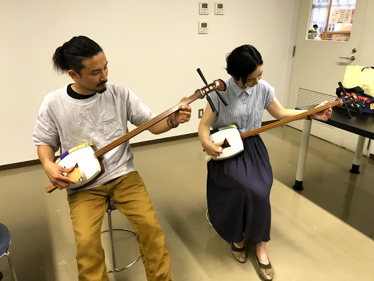 東京三味線体験日曜の午後に30代カップルが津軽三味線体験