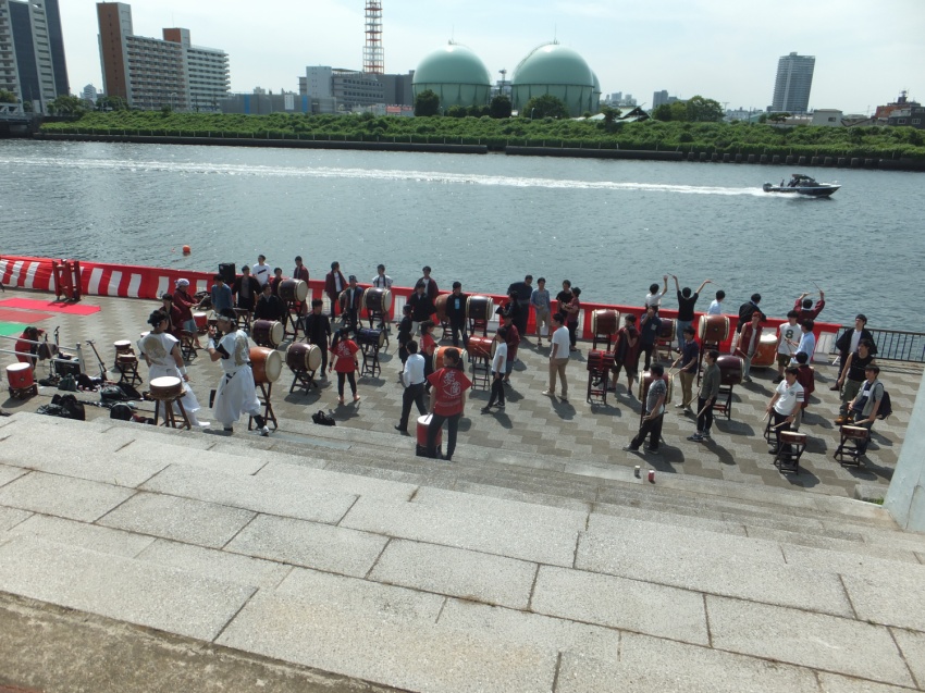 隅田川に波打つTeamBuilding和太鼓体験100名の響き。