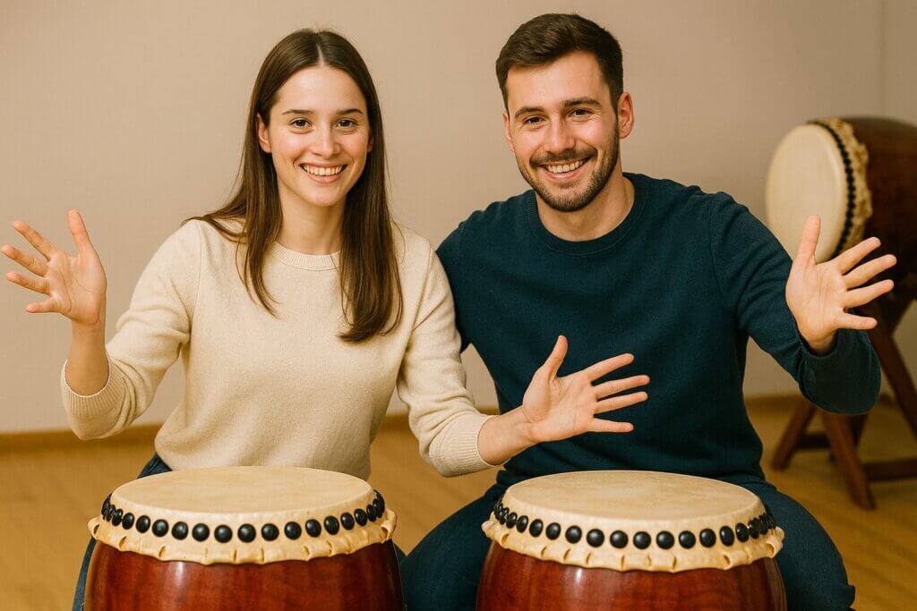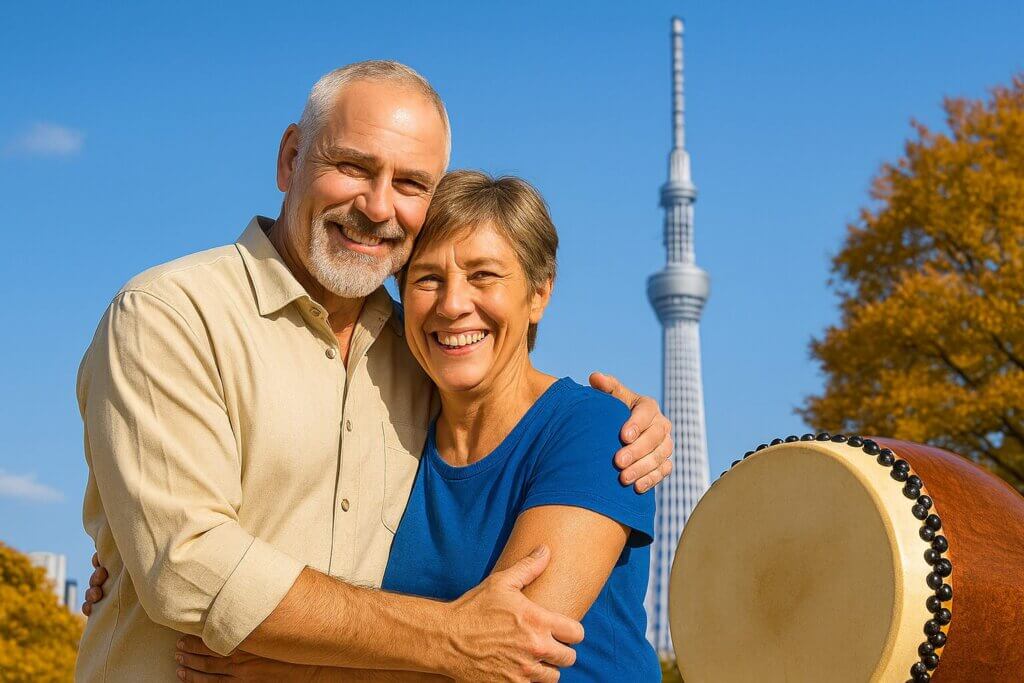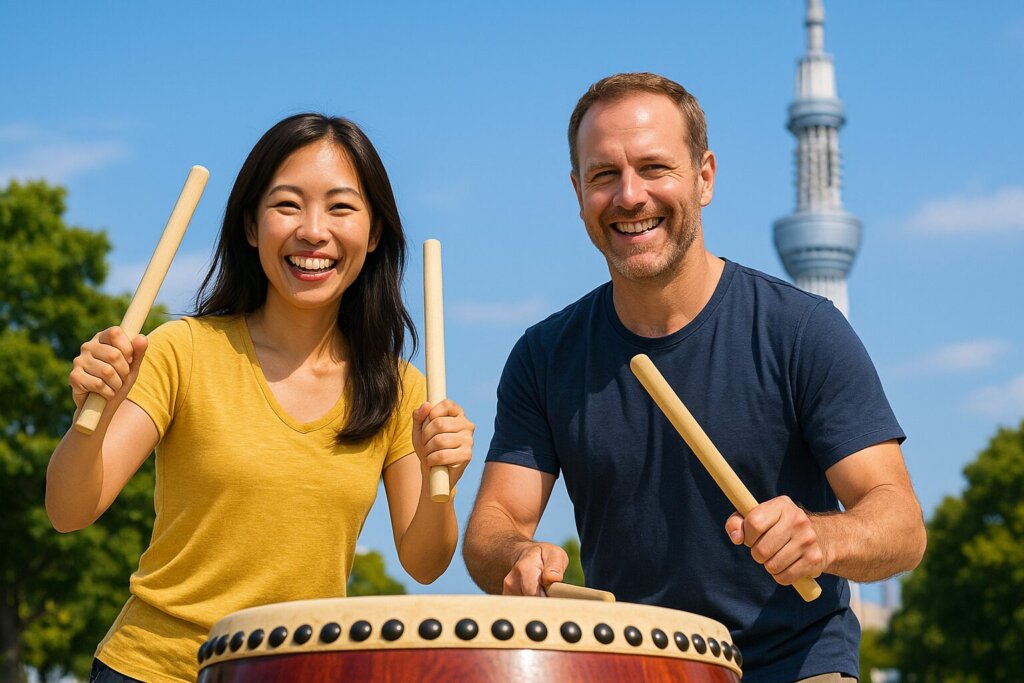 スカイツリーエリアで米国人と日本人夫婦が和太鼓体験15年越しに叶った夫婦の夢