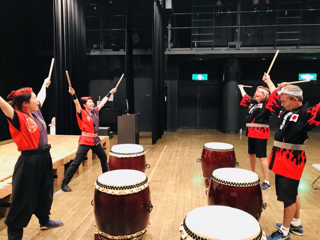 イギリスからお医者さんご夫婦と医者の卵の娘3名で和太鼓体験