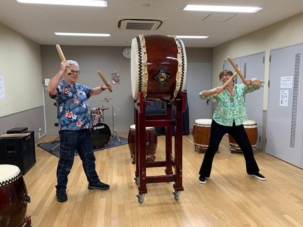 浅草両国エリアでアメリカから70代の夫婦2名で和太鼓体験