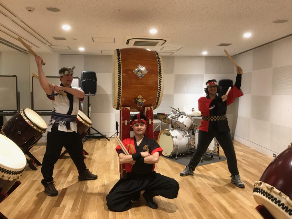火曜日の夕方、オーストラリアから音楽の先生がご夫婦で和太鼓体験