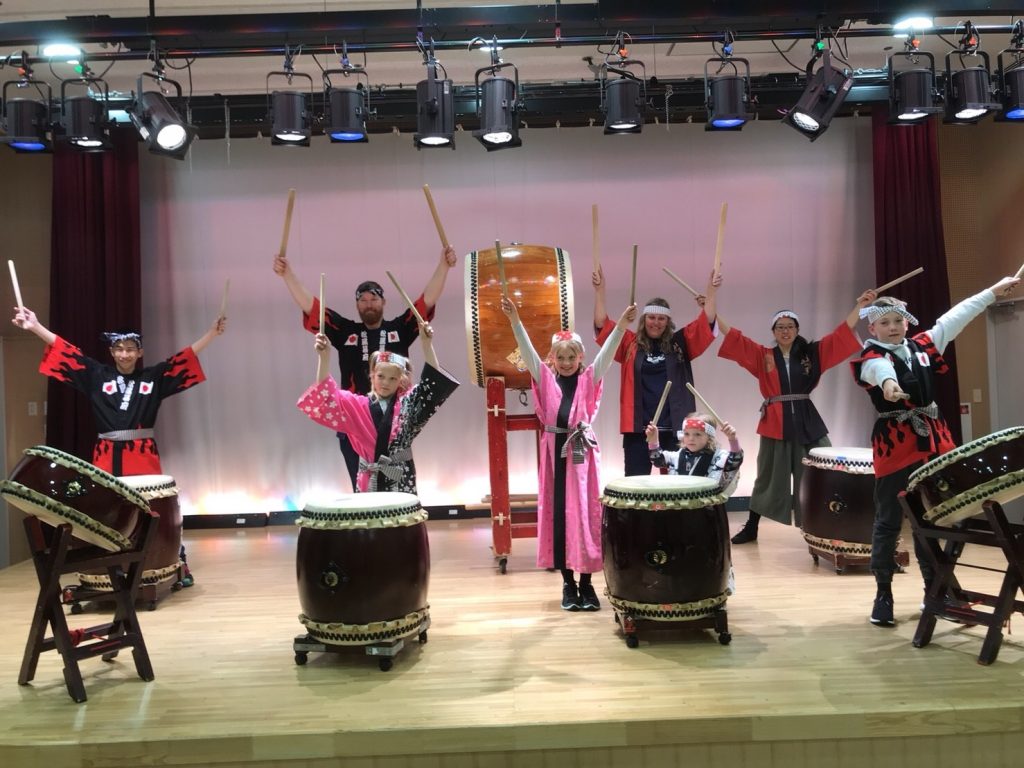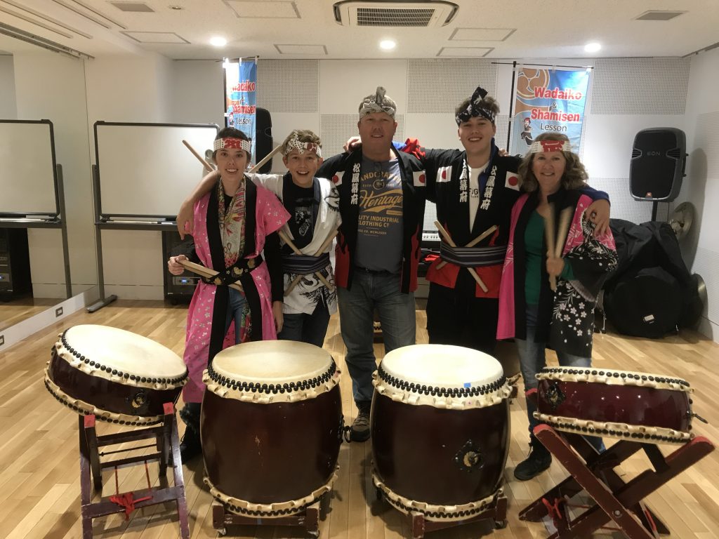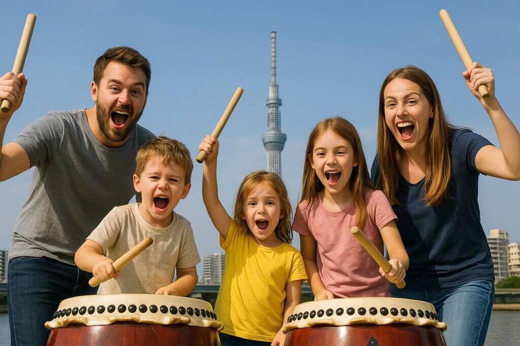 スカイツリーエリアでオーストラリア家族5名で和太鼓体験