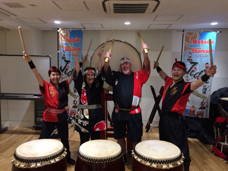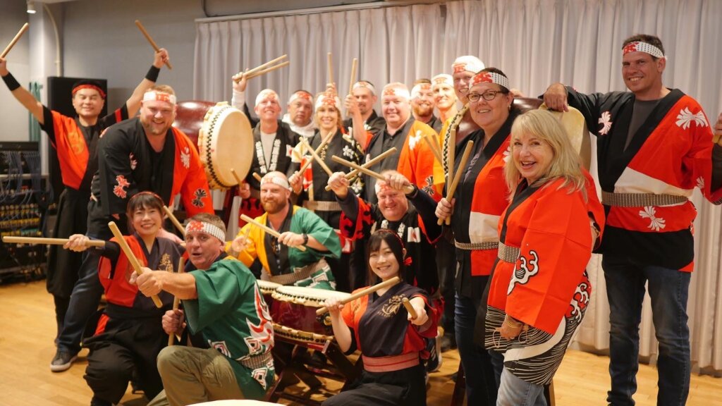 オーストラリア70代 お友達3名で和太鼓体験