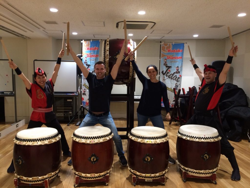 Bonza!!水曜の午後にオーストラリアからご夫婦で和太鼓体験