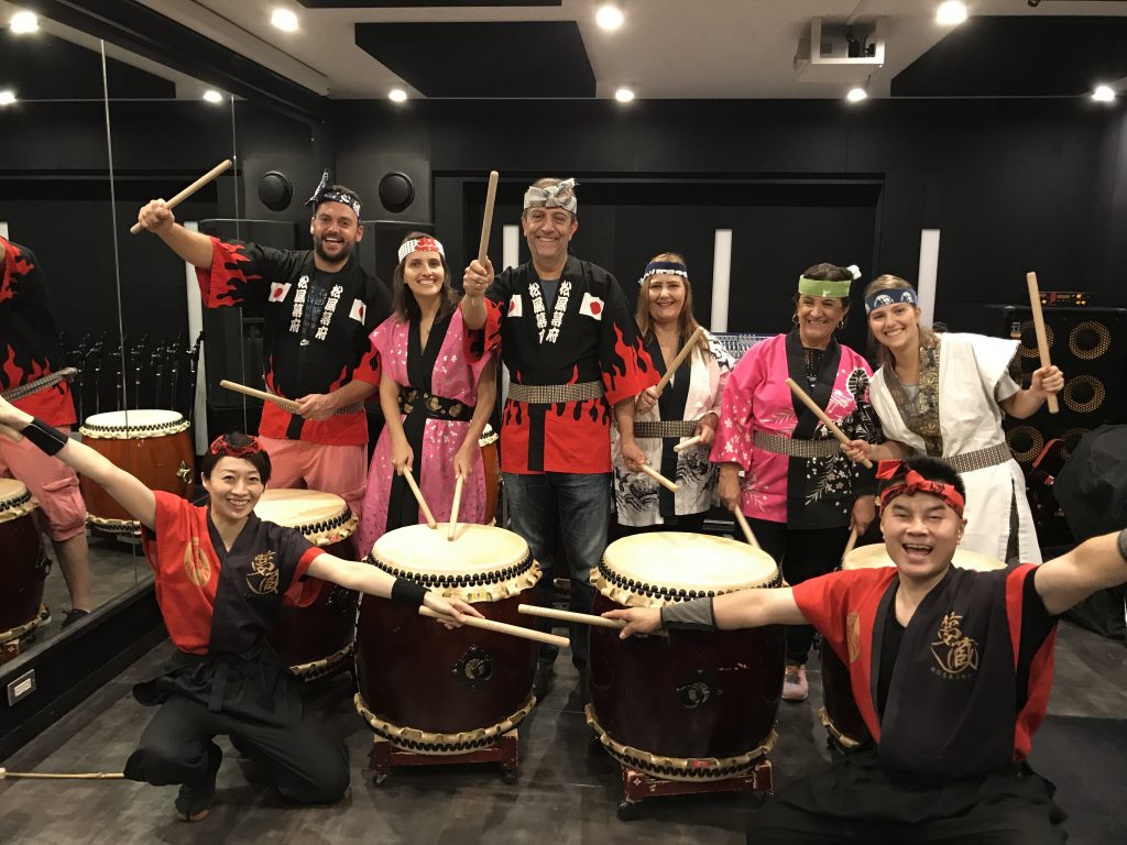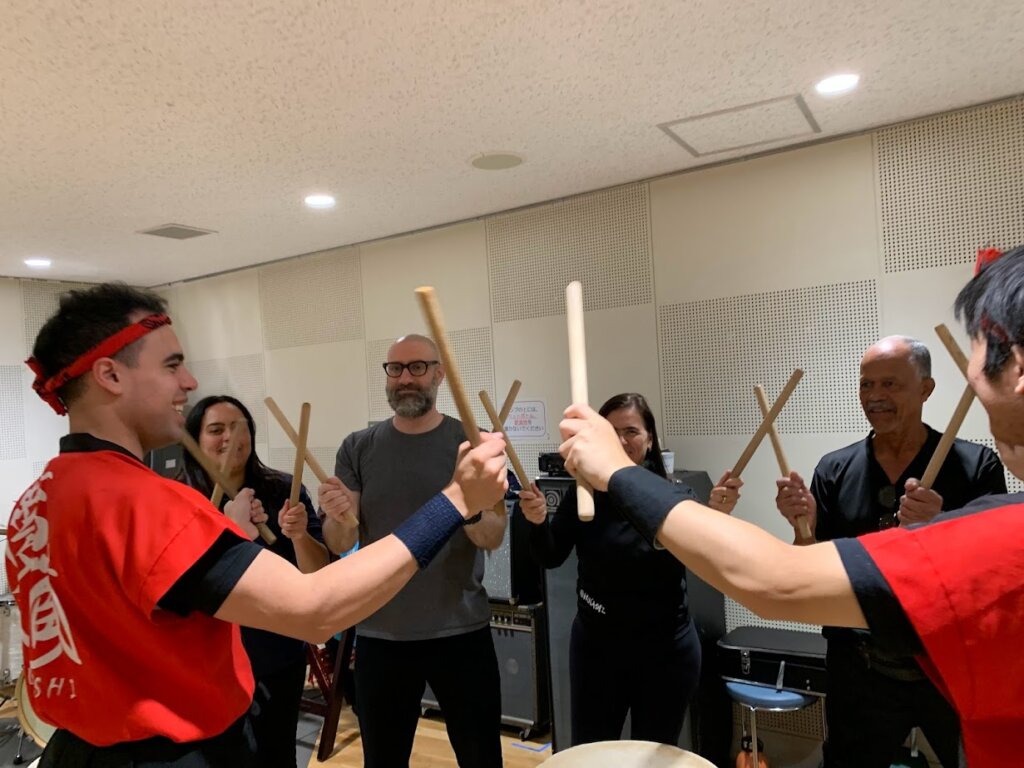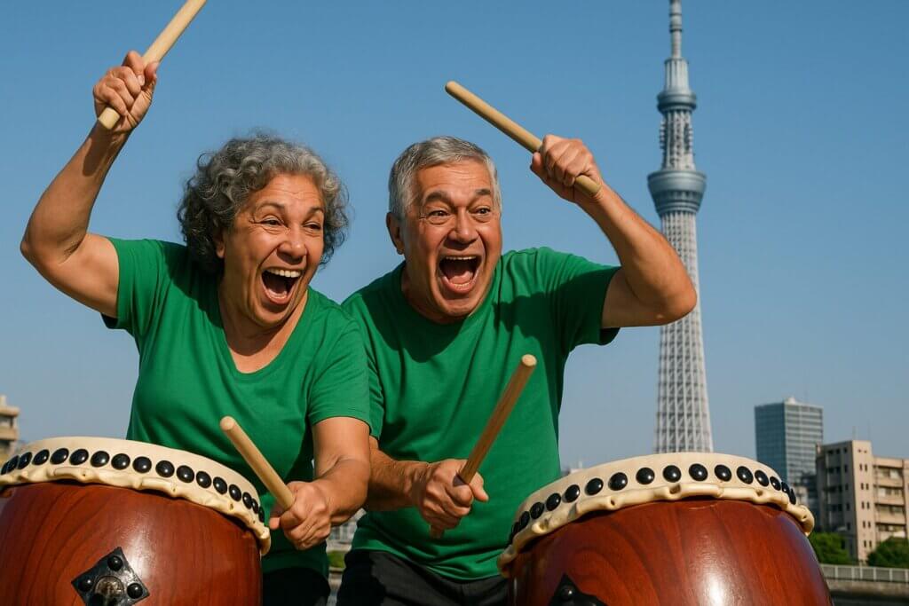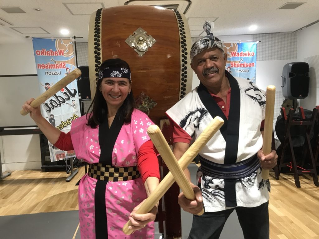 スカイツリーエリアでブラジルから60代夫婦2名で和太鼓体験