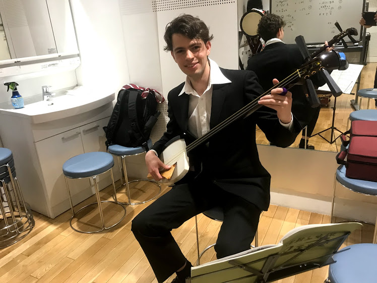東京三味線体験 大阪在住のブラジル人男性が三味線体験