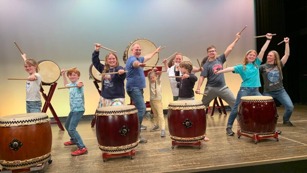 和太鼓講師7年目、ブラジルから家族を招待家族4名で和太鼓体験