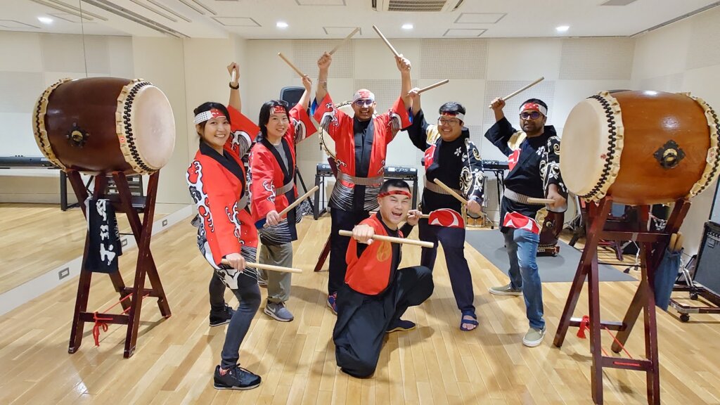 多国籍企業5名が和太鼓チームビルディング|スカイツリーエリアで音がつないだ報奨旅行