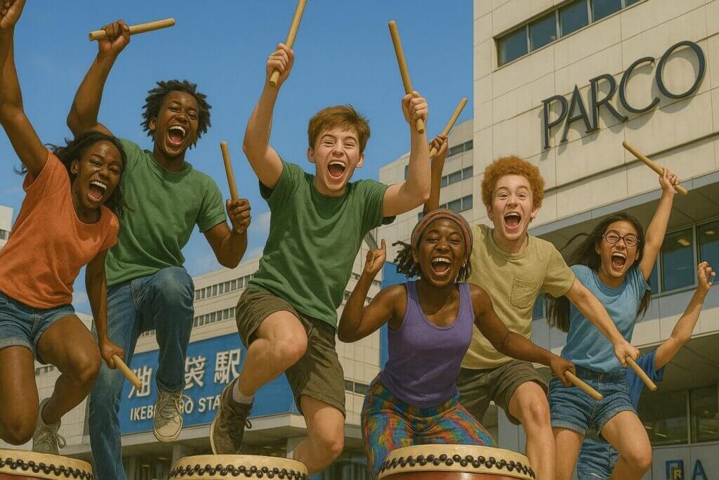 池袋エリアで159名で文化プログラム日本語学校和太鼓体験