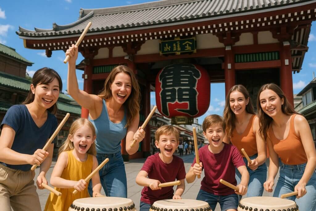 フランスから両親と小6息子東京観光の一環で和太鼓体験