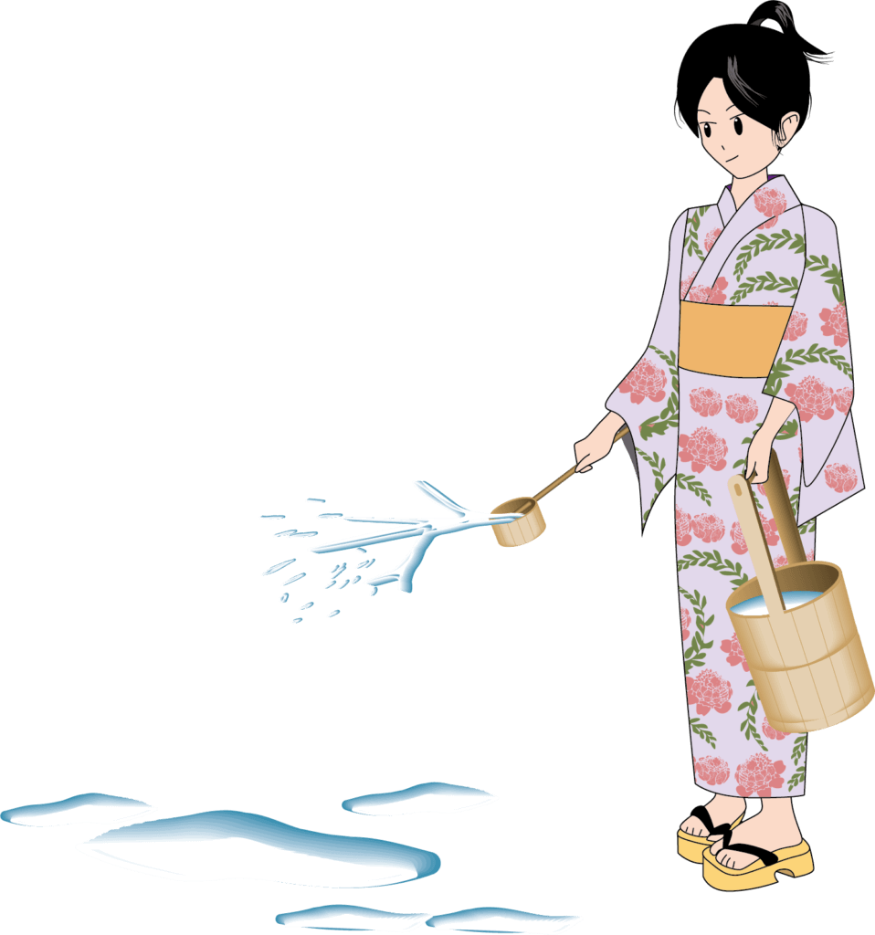 猛暑には家族で打ち水 クールビズで和太鼓体験