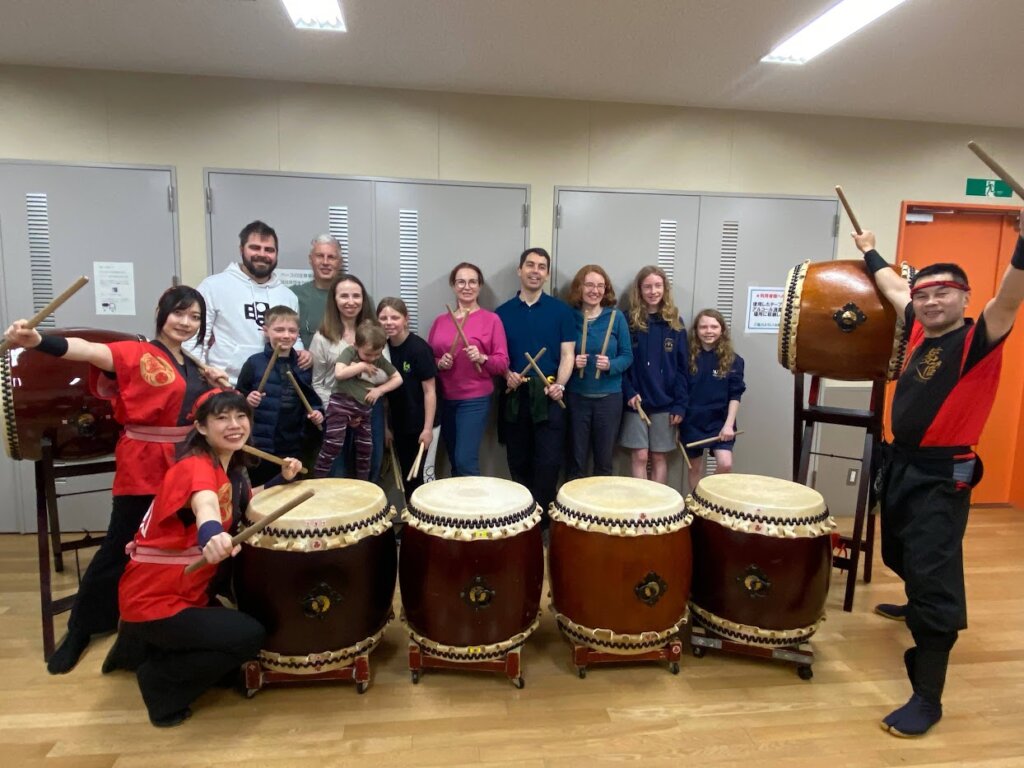 ロシアから三世代でスペシャルな愛をこめて6名で和太鼓体験