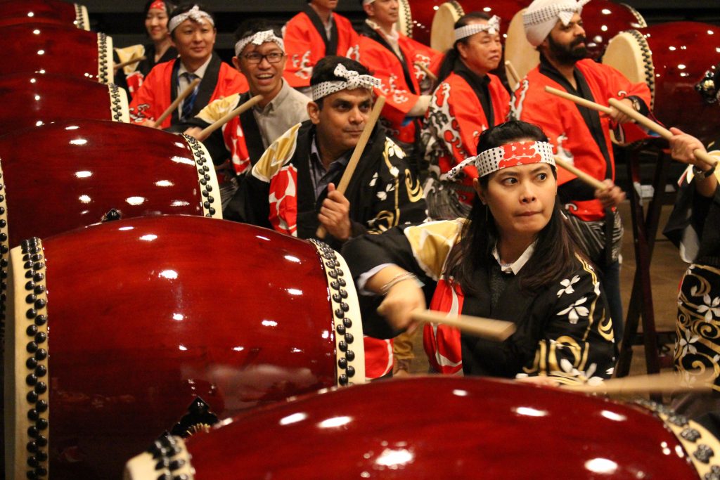シンガポール企業78名が和太鼓チームビルディング|大人数でも一体感を生む企業研修事例