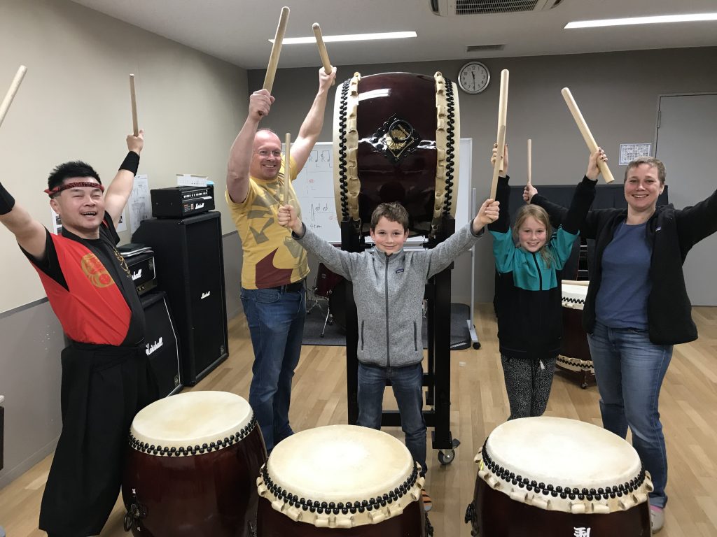 和太鼓チーム結成!?イギリスから音楽一家4名で和太鼓体験