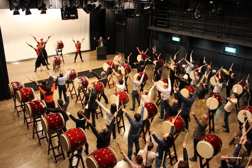 池袋エリアで159名で文化プログラム日本語学校和太鼓体験