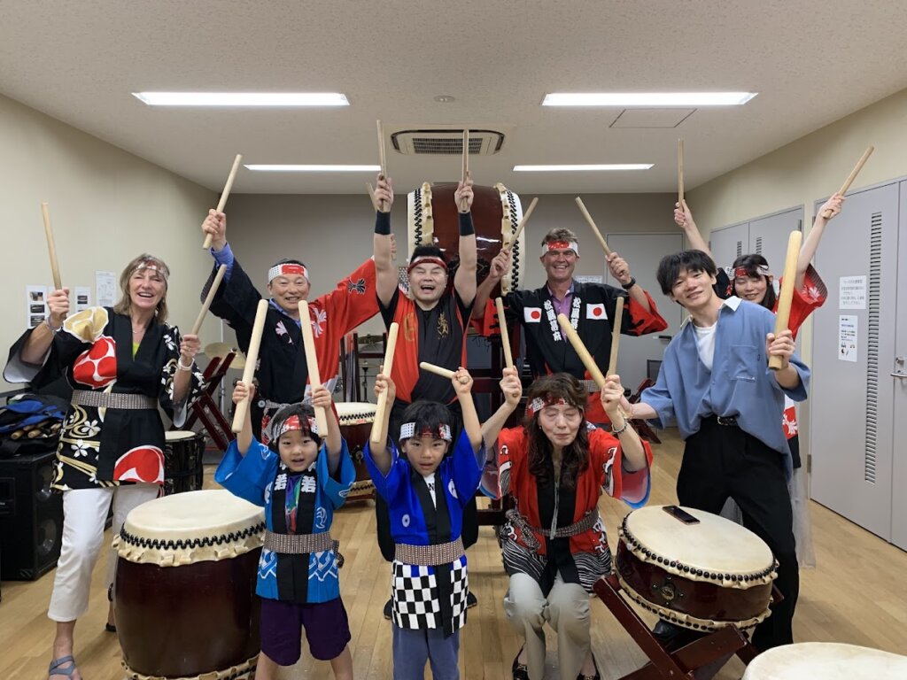 リアルくノ一夢子です。 せーの!!“Here we go!!” 日本語学校で7名様で和太鼓体... -