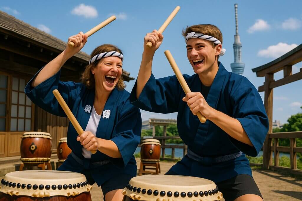 浅草両国でアメリカ夫婦が和太鼓体験|2時間前から待った“念願の一打”