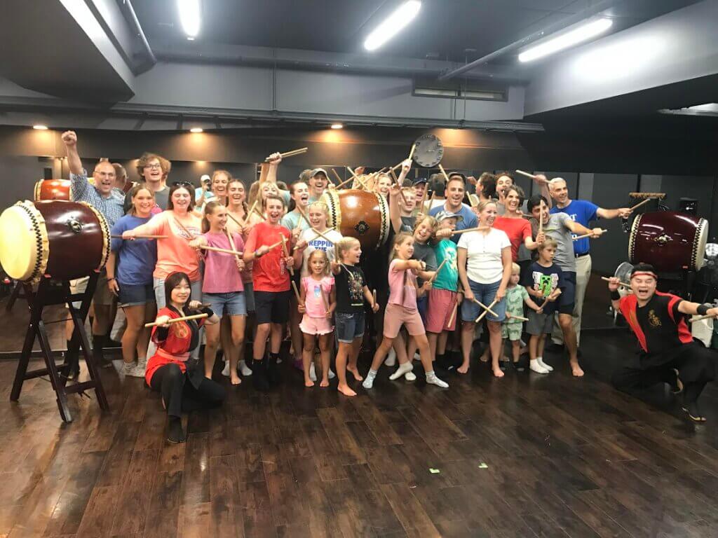 アメリカから家族6名貸切法被衣装付き和太鼓体験60分コース