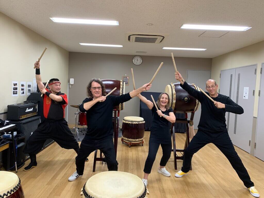 オーストラリア弁護士和太鼓少年4名アメリカ2名70代夫婦相席で和太鼓体験