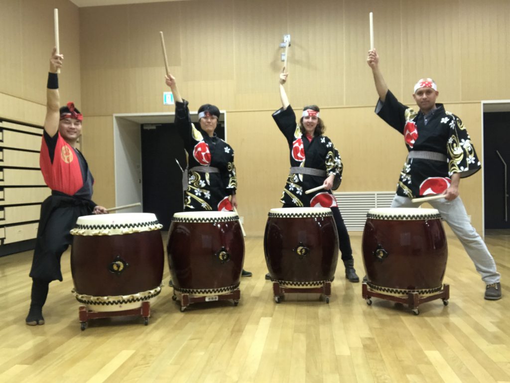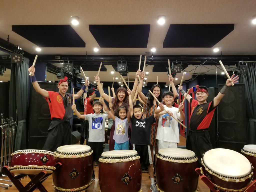 ハワイから火曜の昼に家族4名様の和太鼓体験