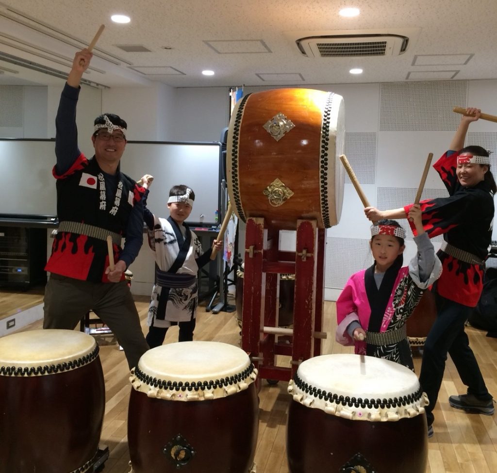 アメリカシアトルから親子水入らず 和太鼓体験