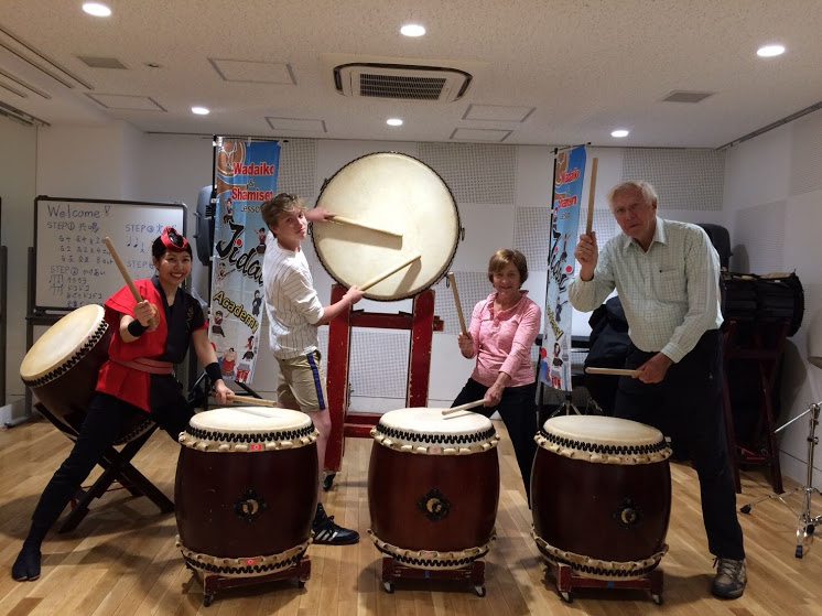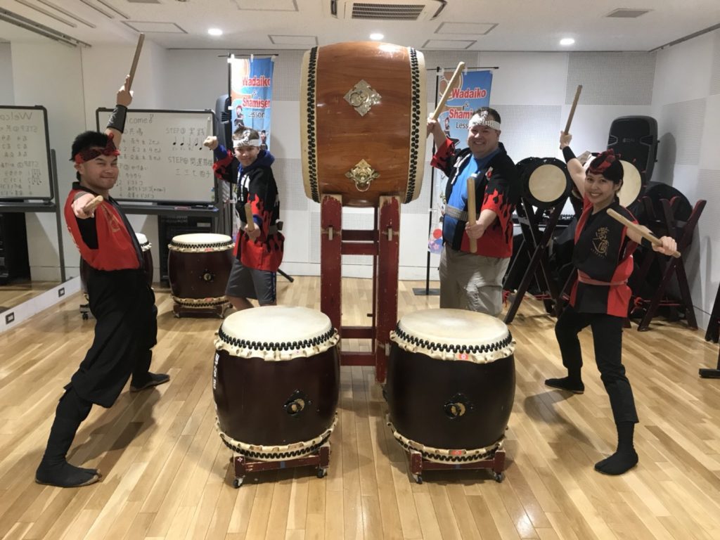 秋葉原でフロリダから年の瀬の午後家族3名で和太鼓体験