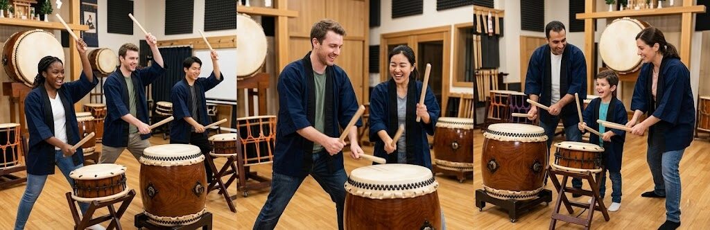 和太鼓は、初めてでも音を出しやすく、音楽経験の有無にかかわらず楽しみやすい体験です。年齢や国籍を問わず、一緒に参加しやすいのが大きな魅力です。